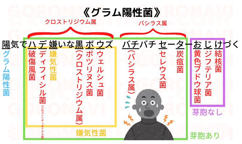 グラム陽性菌は、ゴロでサクッと覚えましょう!